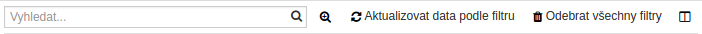 Otevírá formulář pro přidání filtru. Aktivní filtr je poté značen tmavě zabarveným záhlavím sloupce na němž je filtr aktivován.