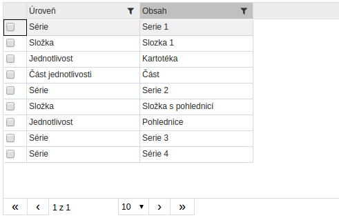 Oba soubory uvádějí číslo záznamu a číslo jednotky popisu z tabulkového zobrazení, a dále UUID příslušné jednotky popisu.