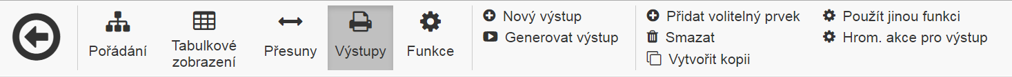 Vrátí výstup do režimu přípravy, ve kterém je možno editovat prvky. Tato ikona se objeví pouze pokud byl výstup již vygenerován.