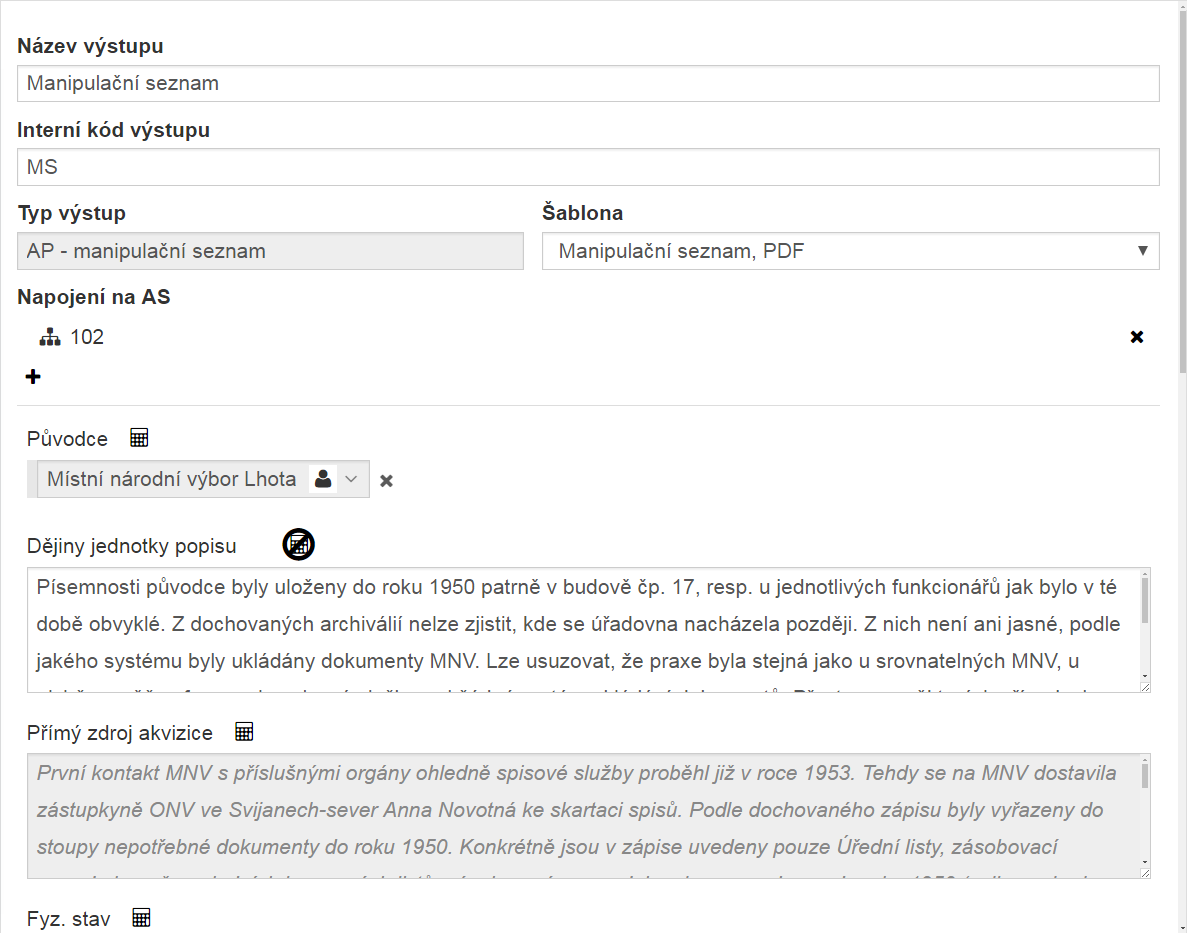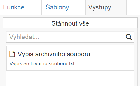 Sekce Výstupy slouží pro tvorbu archivních pomůcek dle Základních pravidel.